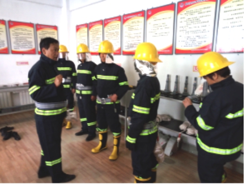 現(xiàn)場演示微型消防站防護(hù)用具的穿戴及使用方法,進(jìn)一步細(xì)化了滅火戰(zhàn)斗組、救援組各所屬人員的責(zé)任分工,并對各類防護(hù)、逃生、破拆工具的實(shí)際用途做了詳細(xì)的講解說明。