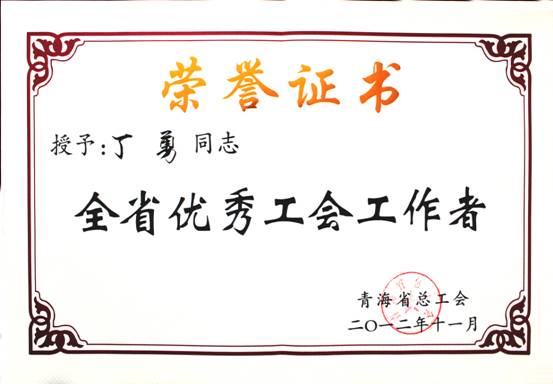 在2012年11月23日召開的青海省工會第13次代表大會上,省總工會對全省優(yōu)秀個人、模范集體進行了表彰。集團總經(jīng)理王玉輝同志榮獲"全省職工之友"榮譽稱號;青海物產(chǎn)物資配送有限責任公司工會榮獲"全省模范職工之家"榮譽稱號;馬軍同志榮獲"全省優(yōu)秀工會積極分子"榮譽稱號;丁勇同志榮獲"全省優(yōu)秀工會工作者"榮譽稱號。