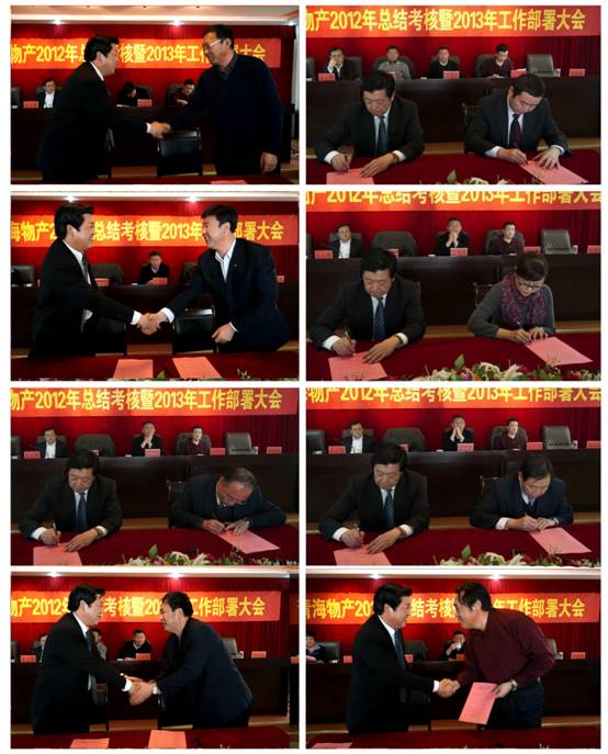 會(huì)上,由集團(tuán)總經(jīng)理王玉輝與所屬各公司、集團(tuán)各部簽訂2013年經(jīng)營業(yè)績(jī)目標(biāo)責(zé)任書,由集團(tuán)黨委書記白家林與所屬黨委(總支)、直屬黨支部簽訂黨建工作目標(biāo)管理責(zé)任書、與所屬各公司法定代表人簽訂黨風(fēng)廉政建設(shè)責(zé)任書。